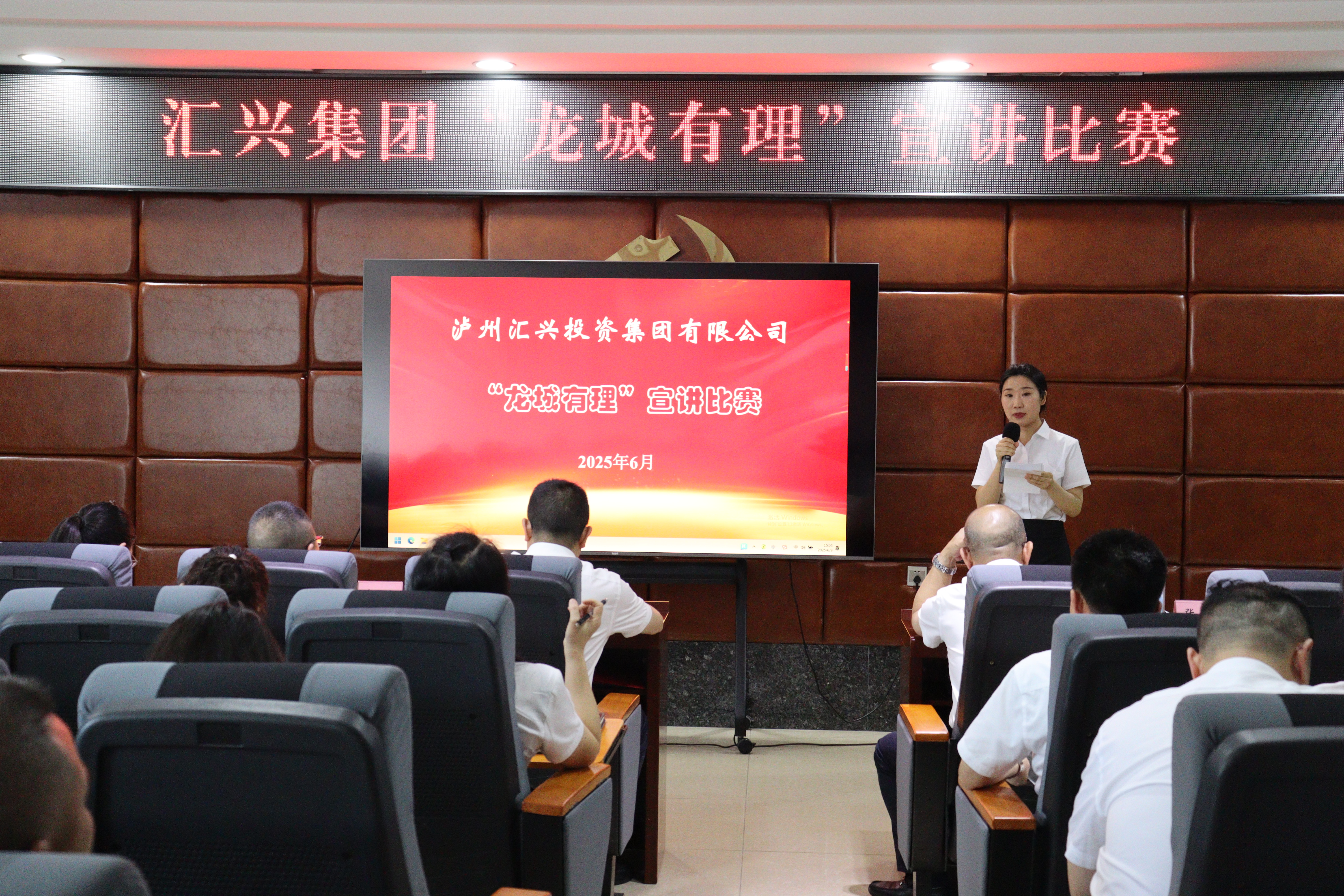 為貫徹落實(shí)黨的二十大和二十屆二中、三中全會精神,積極響應(yīng)省委、市委、縣委決策部署,推動黨的創(chuàng)新理論深入人心,6月9日,瀘州匯興投資集團(tuán)有限公司成功舉辦 “龍城有理” 宣講比賽。匯興集團(tuán)在家領(lǐng)導(dǎo)班子,各支部黨員、預(yù)備黨員、發(fā)展對象等近100人現(xiàn)場觀賽。